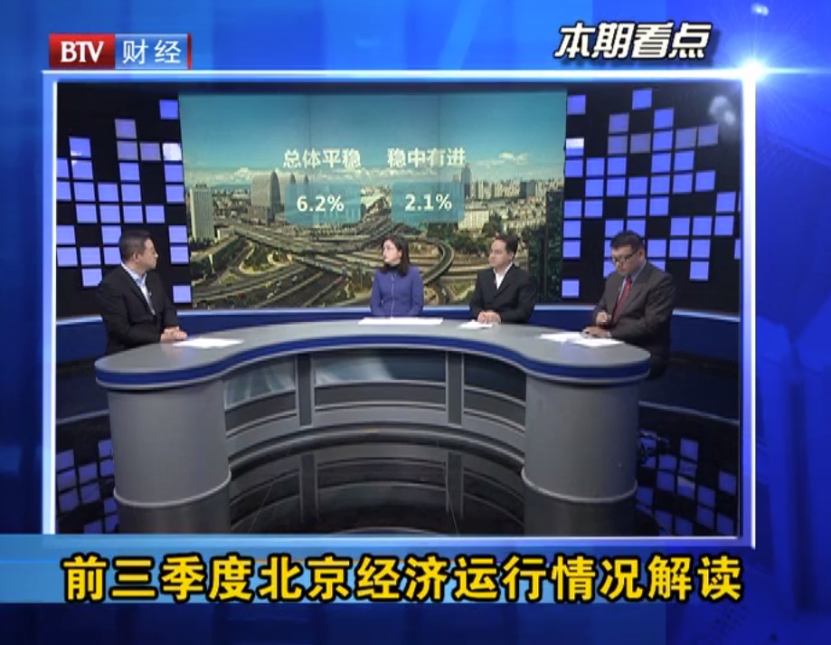 主持人:李海峰 嘉 宾: 朱燕南 北京市统计局综合处处长 郭翰超 国家统计局北京调查总队综合处处长 张 彬 评论员 主持人:大家好,欢迎您收看《数说北京》,也欢迎三位嘉宾的到来,现在前三季度北京的经济运行情况数据已...