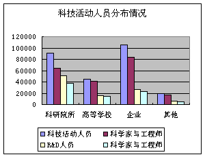 从首都高校的这10个学科领域看, 7个学科属于人文社科类,1个是基础学科,2个工科学科。这也是与高校的科学研究的特点和研究方向相吻合的。 3、首都高校与企业和国外机构的合作不断加强 首都高校在科研活动中,加强了与其他机构的合作,其中与企业的合作是高校面向首都国民经济建设的最直接的方式之一。与企业的合作形式有,共同承担课题、接受企业的委托课题、对企业人员进行培训、咨询服务等,逐步实现全方位的合作。从2000年首都高校承担的科研课题看,全部8278项课题中有1540项课题是通过高校与各类企业合作进行的,占全部课题数的18.6%;同时来自企业的委托研究课题也比较多,达到了795项,占全部课题数的9.6%。 首都高校还加强已有科研成果向企业的转移工作,让高校的科研成果能够在企业发挥作用,实现向现实生产力的转化。2000年,首都高校共签订技术转让合同1159项,合同总金额81195.1万元,为首都企业利用高新技术提升竞争力,达到迅速发展提供了良好的条件。 同时,首都高校还加强了与国外机构的合作。特别注重了项目(课题)的合作研究,利用国外先进的科研力量和设备条件,提高首都高校的科技活动水平和R&D活动的层次和质量。2000年,首都高校与境外机构合作研究课题148项,与境内注册的外商独资企业合作研究课题11项。首都高校还与国外的机构合办了一些高水平的研究机构,共同开展科研活动。2000年,首都高校与境外机构合办研究机构66个,与境内注册外商独资企业合办研究机构33个。 首都高校在提升自己综合科研实力和竞争力的同时,也在不断加强与企业和国外机构的合作,多方面引进科研经费和智力资源,提升首都高校的科技活动层次和水平。 4、高校是首都技术创新体系中的一支重要力量 近几年,以中关村高科技园区为代表的高新技术产业的迅猛发展,推动了首都经济的飞速发展。这与首都技术创新体系的基本确立是分不开的,其中首都高校是首都技术创新体系中的一支重要力量。 中关村高新科技园区也是首都高校最集中的区域,首都高校中有近70%的高校位于中关村园区内,如清华大学、北京大学、北航等名校均在此列,这些高校为园区的高新企业发展和首都技术创新体系提供了充足的智力资源。2000年,园区内的高校有R&D活动人员26038人,校内科研机构543个,当年研究课题7450个,转让科技成果986个。通过这些数字可以看出,首都高校成为促进中关村高新产业发展的重要支撑。 另一方面,首都高校还积极参与到高新产业的实践中去,清华同方、北大方正等为代表的高校产业正迅速成长壮大起来,已经成为中关村地区的科技企业的重要部分。同时,首都高校还通过建立大学科技园的方式介入到首都经济建设中去,其中包括清华大学、北京大学等2个国家级大学科技园和北京航空航天大学科技园、北京邮电大学等8个北京市级大学科技园。这些大学科技园的建设,为高校参与首都经济建设提供了充分的基础条件,将更大程度地发挥首都高校的优势和特点,为首都经济建设服务。 二、首都高校科技活动的特点 高等学校具有培养高层次人才和开展科学研究活动两方面的职能,其科技活动与科研院所、企业的科技活动在研究方向和研究内容等方面也有一定的区别,从这次R&D资源清查的结果我们可以看出,首都高校的科技活动有自己的特点。 1、科技活动人员密集,整体素质高 虽然有R&D活动的高校数只占全市单位数的2%,从业人员只占全市的6.57%,但科技活动人员却占全市的19.14%,R&D活动人员占全市的18.26%。从此可以看出,首都高校是全市科技活动人员非常集中的地方。 首都高校的科技活动人员在学历和职称方面,也处于较高的层次,整体素质较高。科技活动人员中科学家与工程师的比例,也就是文化程度在大专以上或拥有中级及以上技术职称的人员在科技活动人员中所占的比例,全市平均为78.89%,科研机构为70.6%,企业系统为79.1%,高校为93.5%,高校的人员素质大大超过了全市和其他系统的水平,反映出高校系统在科技人员素质方面的优势比较明显。具体情况见表二。 北京市不同科技活动类型情况比较表 表二: